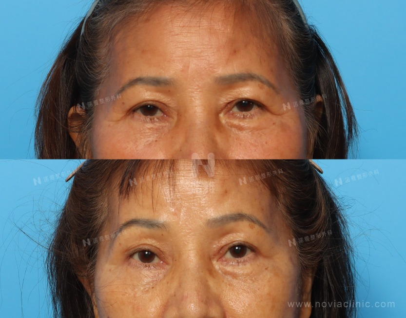 年輕人眉眼間距過近、前額鬆弛、眉毛下垂、眉壓眼 | 中老年人嚴重前額鬆弛、眉毛下垂、前額皺紋嚴重 |