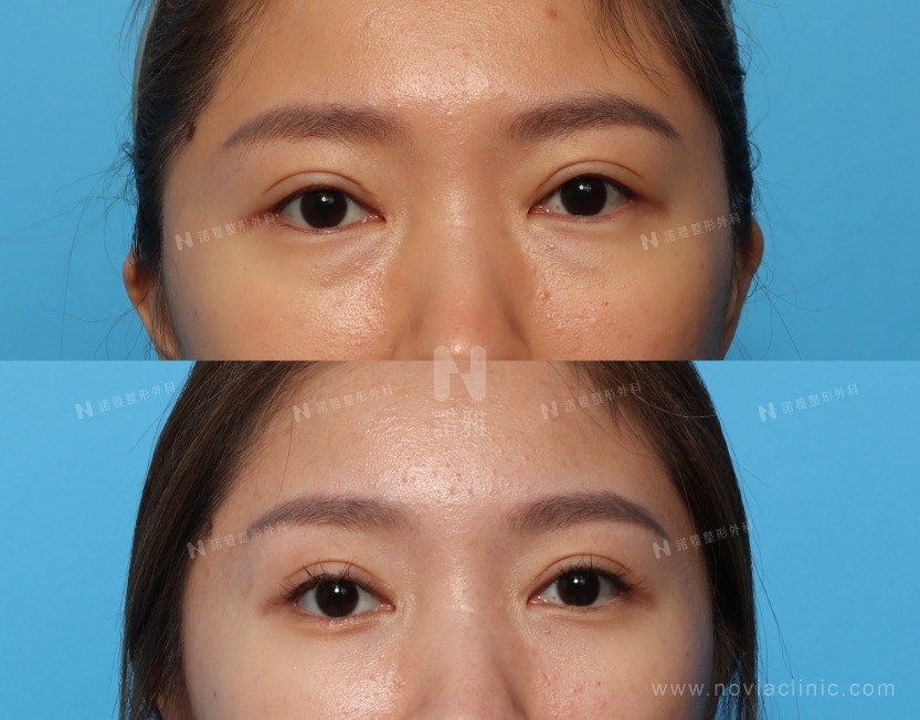 一般來說,若皮膚無明顯鬆弛現象,可以利用雙眼皮手術來放大雙眼。但若有眼皮鬆弛下垂或是眉眼距離太窄的情形,則可以考慮進行內視鏡前額拉皮(提眉手術)手術。整形手術皆要看整體協調性來客製化,醫師評估過後也可以進行二合一手術,來達到最大的效果。