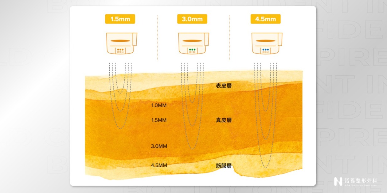 深度:能量精準鎖定筋膜層與眞皮層,免手術即可達到拉皮深度