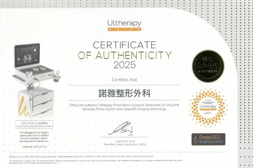 A:美國音波UIthera®為非侵入式療程,無須開刀、安全、修復期較短。療程後數小時內,肌膚可能會呈現泛紅或輕微腫脹,但不會影響日常生活。